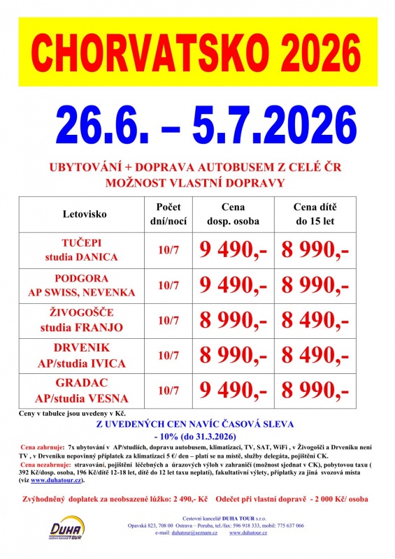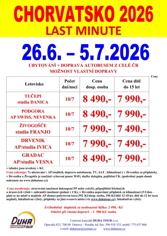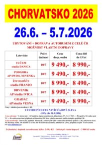 Chorvatsko 26.6. – 5.7.2026 Tučepi, Podgora, Živogošče, Drvenik, Gradac