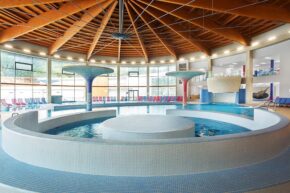 Voda je život. Povznáší i uklidňuje, poskytuje úlevu, tiší bolest, přináší radost a zábavu. Pět vnitřních bazénů – aktivní, relaxační s průplavem, léčivý, panoramatický a dětské brouzdaliště.Průplavový bazén je relaxační termální bazén s průplavem do vnitřního bazénu – v průběhu celého roku si tak můžete užívat koupání v termální vodě pod širým nebem. Provoz v průplavovém bazénu je celoroční, teplota vody se pohybuje od 32 do 34°C.