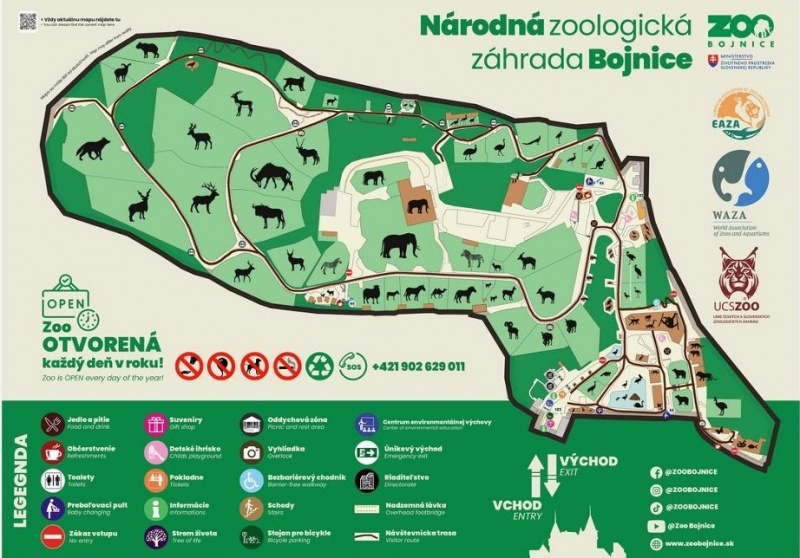 ZOO Bojnice Národní zoo Bojnice je nejstarší a nejnavštěvovanější zoo na Slovensku, otevřená od roku 1955. Nachází se v lázeňském městě Bojnice a je domovem více než 360 druhů zvířat. Areál se rozkládá na ploše 41 hektarů, z čehož výstavní plocha zabírá přibližně 20 hektarů.